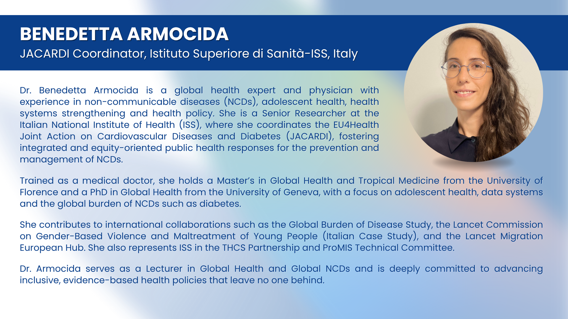 - Dr Benedetta Armocida, JACARDI Coordinator, Istituto Superiore di Sanità-ISS, Italy
