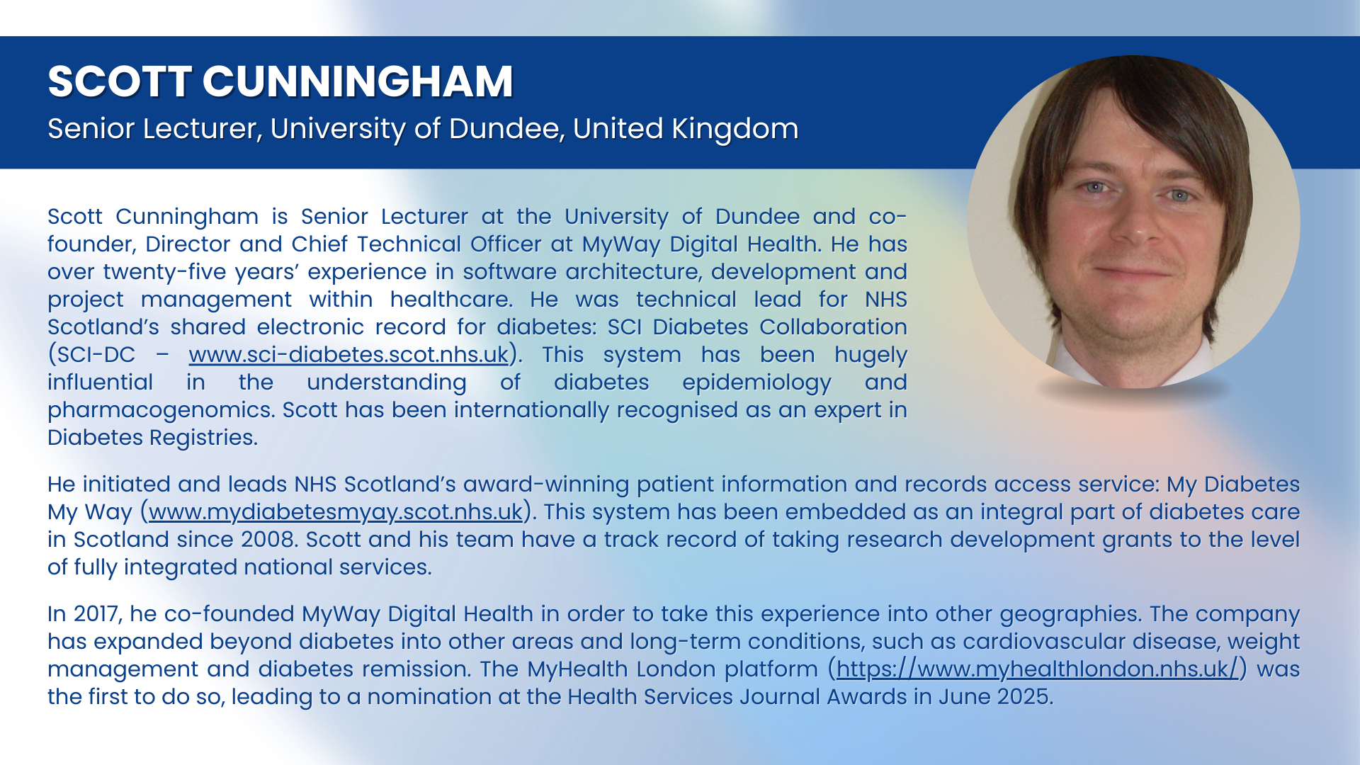 - ‘My Diabetes My Way’ – personalisation and integration | Dr Scott Cunningham, Senior Lecturer, University of Dundee, United Kingdom