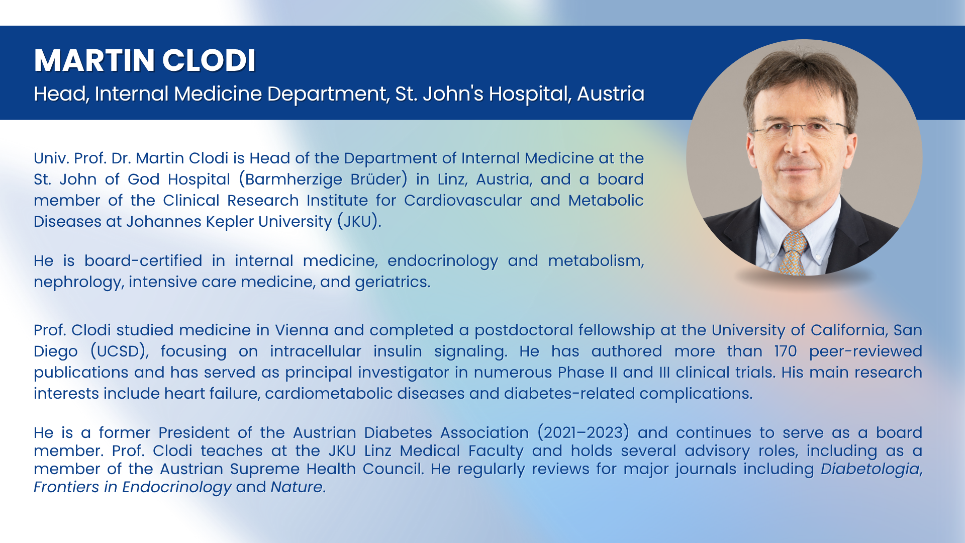 - Prof Martin Clodi, Head, Internal Medicine Department, St John’s Hospital, Austria
