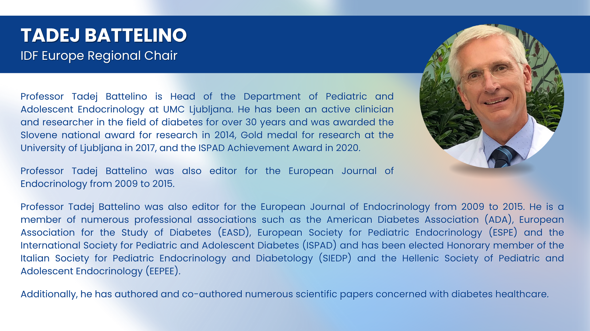 12:25-12:30 | Closing remarks | Prof Tadej Battelino, IDF Europe Chair