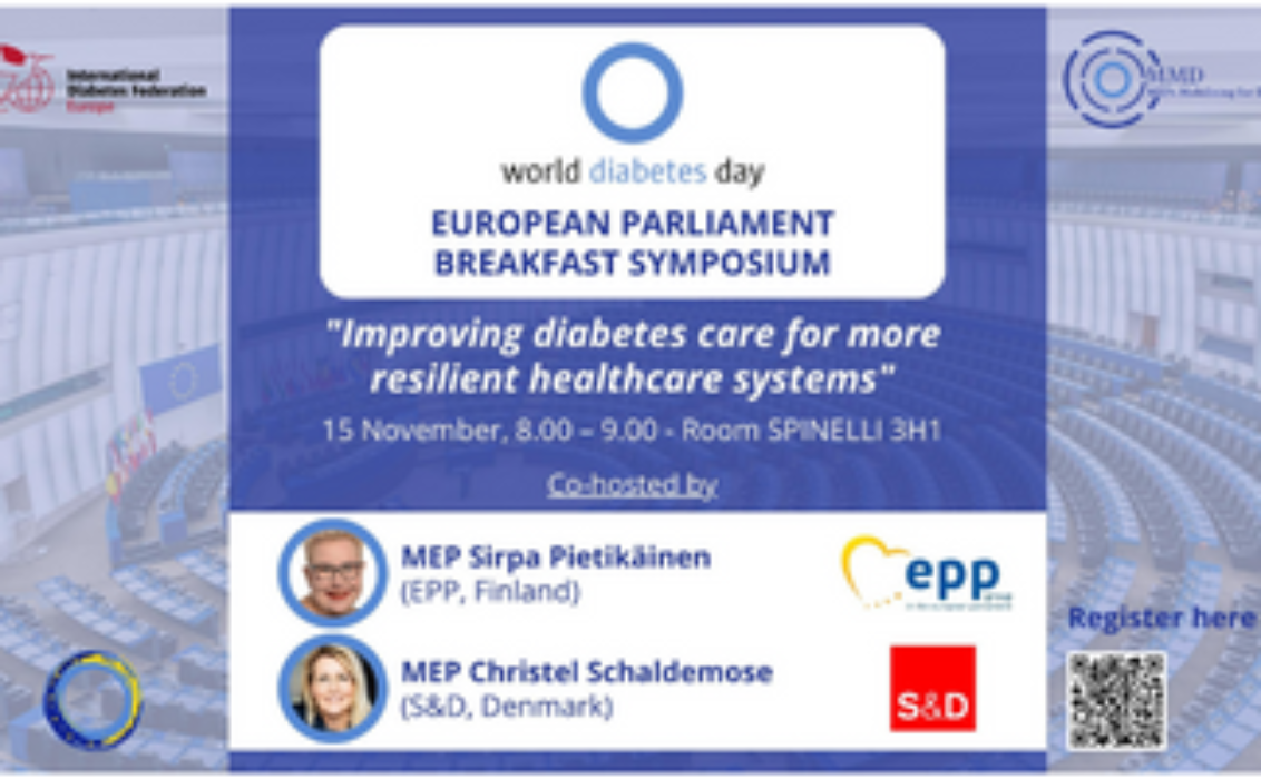 On the occasion of World Diabetes Day, and to mobilise political support for a new diabetes resolution, IDF Europe and MEPs Mobilising for Diabetes (MMD) held a Breakfast Symposium at the European Parliament in Brussels, on November 15.
