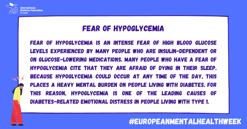 Click the image below to read about how fear of hypoglycaemia can affect people living with diabetes’ quality of life, and mental health in particular. IDF Europe calls for adequate psychological care and training for healthcare professionals to be a core component of diabetes care across Europe to help people living with diabetes who may be struggling with fear of hypoglycaemia.