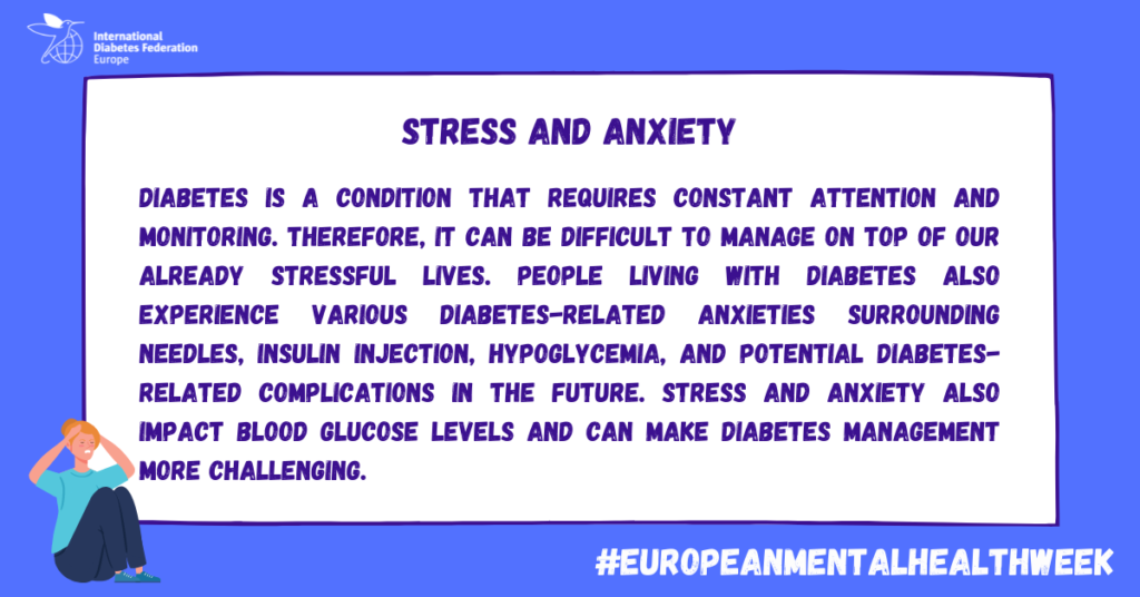 Last week (10th-16th May) was European Mental Health Week, an initiative launched last year by Mental Health Europe to raise awareness about the importance of mental health in our everyday lives, particularly in the wake of the COVID-19 pandemic. IDF Europe was proud to support European Mental Health Week this year to discuss the various ways in which diabetes can affect one’s mental health and important tips and tricks on how to alleviate this burden (with help from our YOURAH network!)