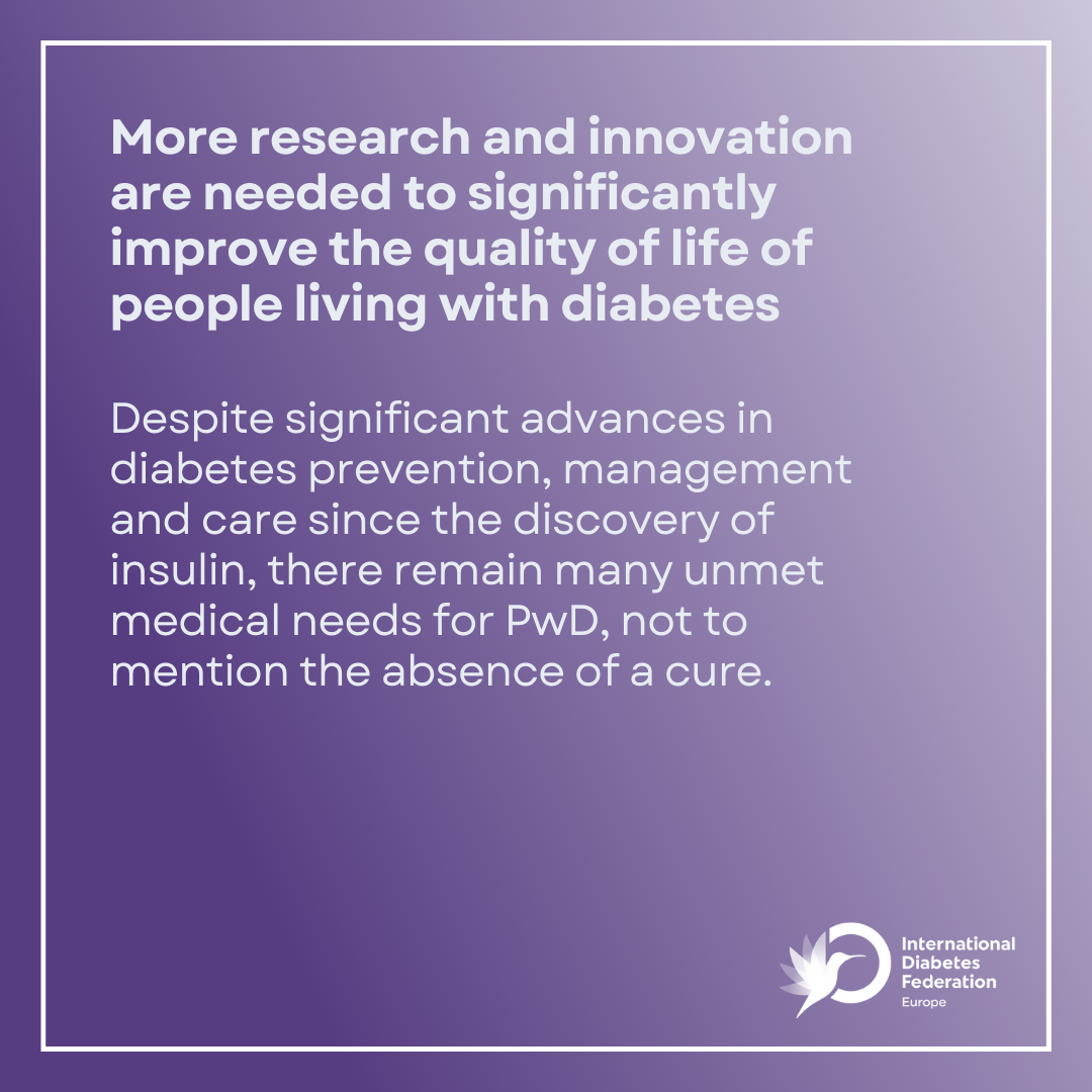 However, despite these significant advances, unmet medical needs remain. Diabetes prevalence continues to rise, one in two PwD do not meet their blood glucose targets and many of them develop diabetes-related complications. Required advances include those supporting more effective and targeted diabetes treatment and prevention as well as those enabling an improvement in the quality of life and health outcomes that existing solutions do not currently offer, and ultimately the possibility of a cure.