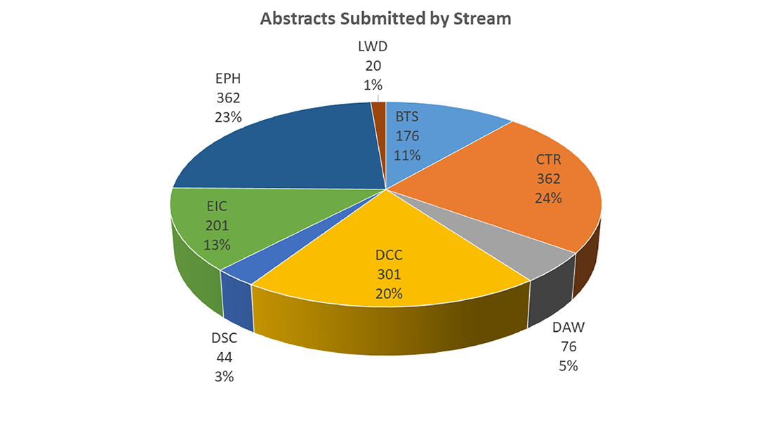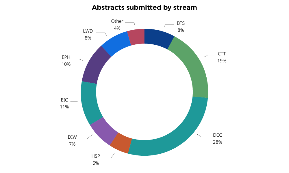 2104 résumés ont été soumis à un examen par les pairs. Ils ont été évalués par 229 pairs de 44 pays.