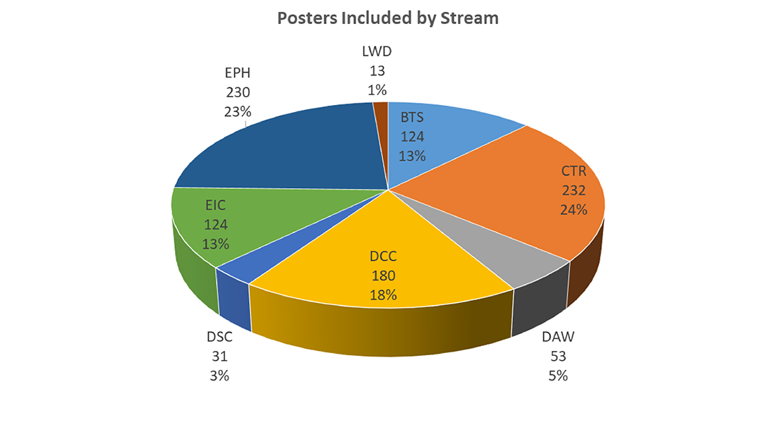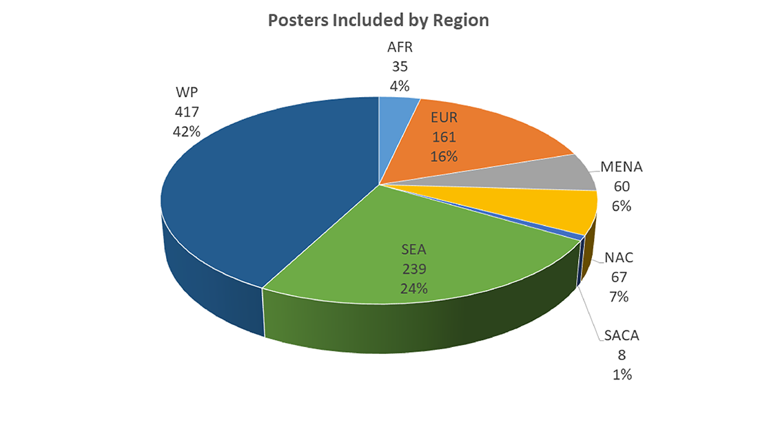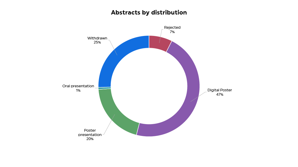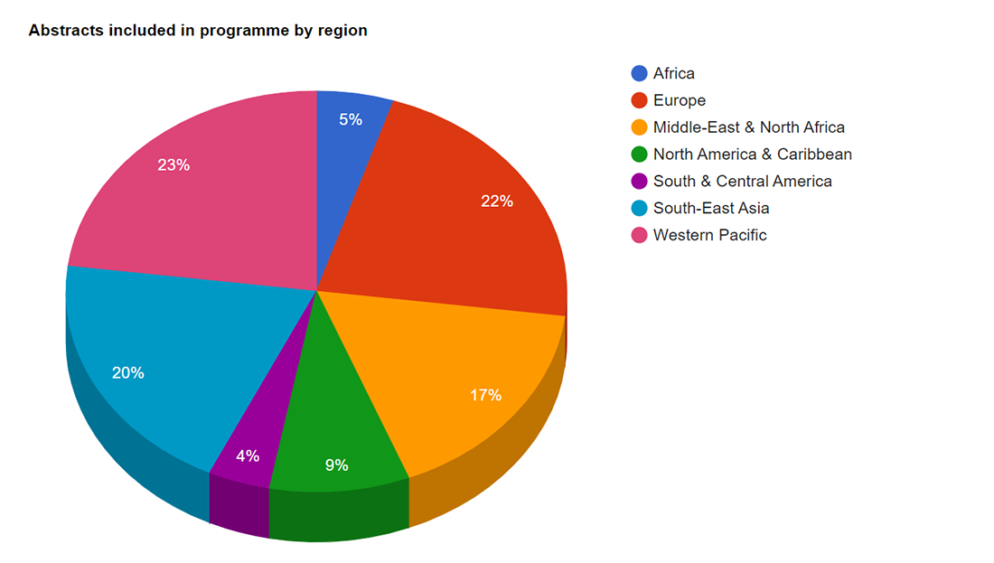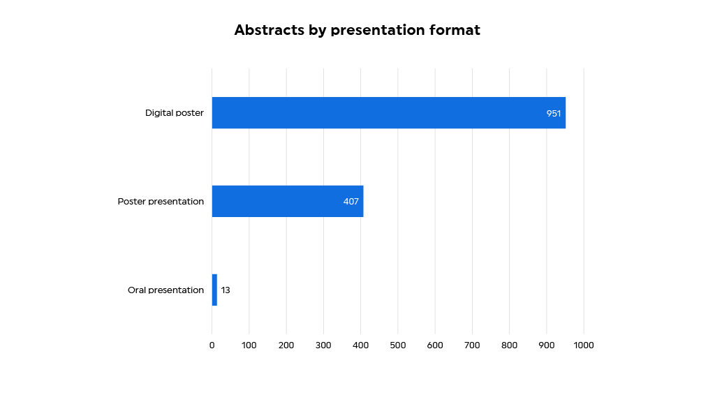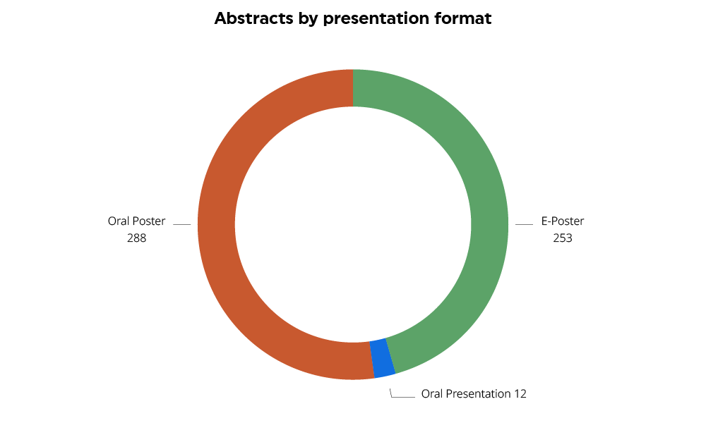 - Nombre total de résumés inclus dans le programme : 753 e-posters, 12 présentations orales de posters et 288 posters oraux