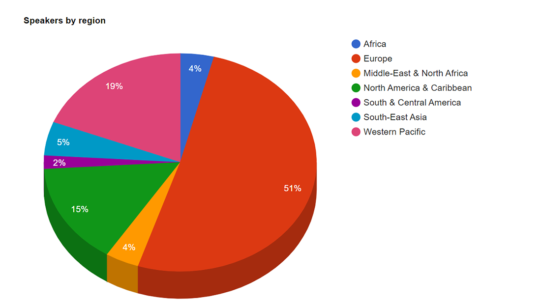 405 orateurs de 50 pays se sont exprimés lors du congrès. Les sessions ont été présidées par 205 personnes de 36 pays.
