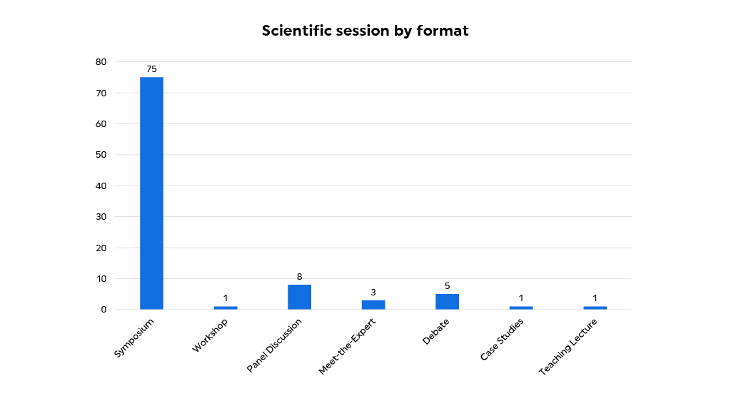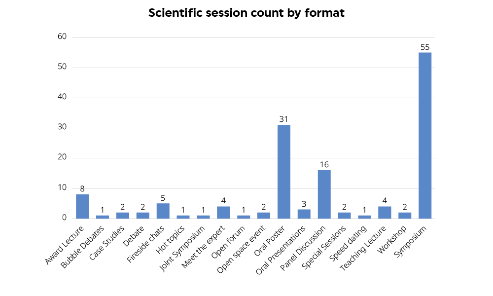 Le programme scientifique était composé de 7 volets et comprenait un total de 332 heures de sessions. Celles-ci se sont déroulées sur 3,5 jours et dans 13 salles de session ainsi que dans la zone des posters.