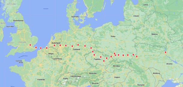 La randonnée de 30 jours débutera le 26 août à Greenwich Park, à Londres, au Royaume-Uni. M. Gore et son équipe se rendront à Douvres par le Pilgrims Way, puis traverseront la France, la Belgique, la Hollande, l'Allemagne, la République tchèque, la Pologne et l'Ukraine. Parcourant jusqu'à 150 km par jour, le peloton s'arrêtera dans des villes et des villages pour collecter des dons et sensibiliser l'opinion publique. Les cyclistes intéressés peuvent participer à une partie du voyage en utilisant les traceurs Garmin InReach® pour trouver le peloton. RideUkraine 2023 fournira un fichier GPX à télécharger sur les ordinateurs de vélo.